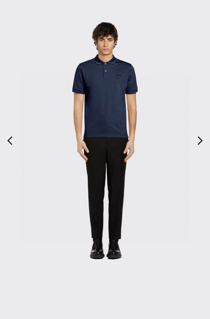 This Prada polo shirt features a timeless design in a sleek navy color. With a classic collar and button placket, it also includes the subtle Prada logo on the chest. This versatile piece offers a sophisticated and polished look, perfect for both casual and semi-formal occasions.