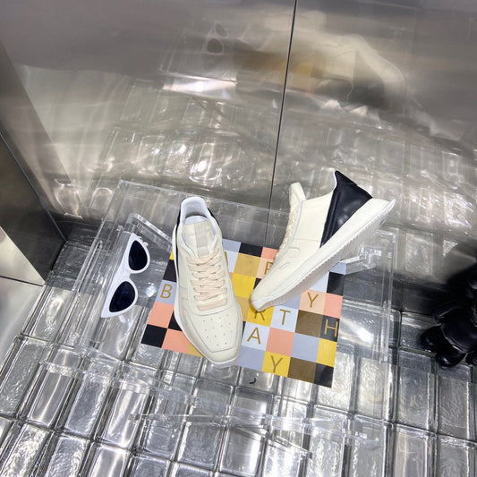 Rick Owens Black and White Low-Top Sneakers