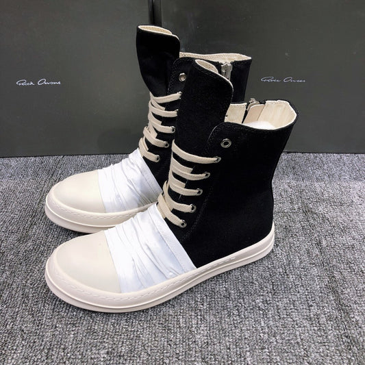 Rick Owens Combat Boots - Black Leather with Olive Laces