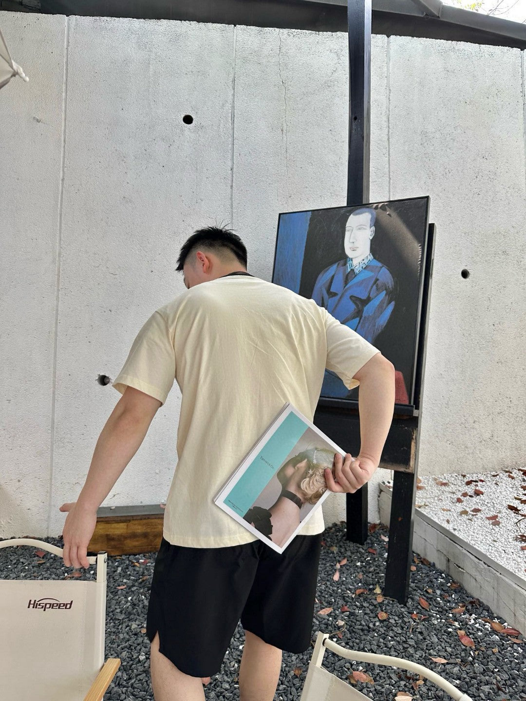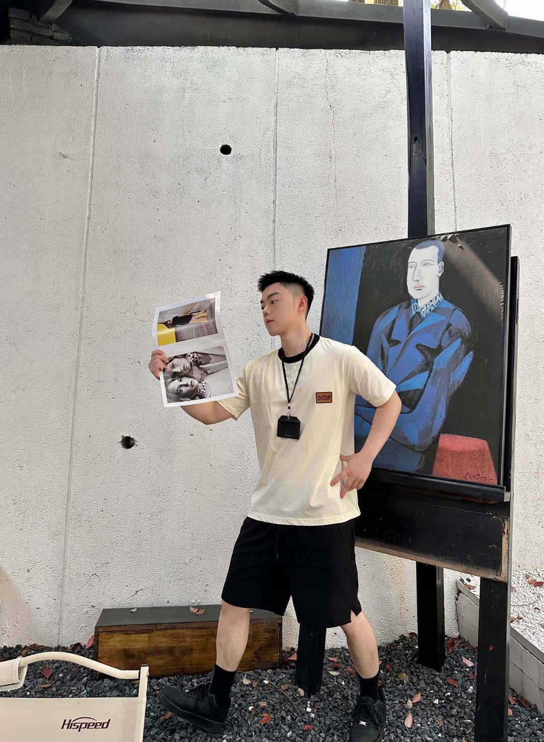 This Dior t-shirt features a minimalist design with a cream-colored cotton fabric and black trim on the collar. The small Dior patch on the chest adds a touch of elegance and sophistication. Perfect for a refined and stylish look, this t-shirt combines luxury and simplicity effortlessly.