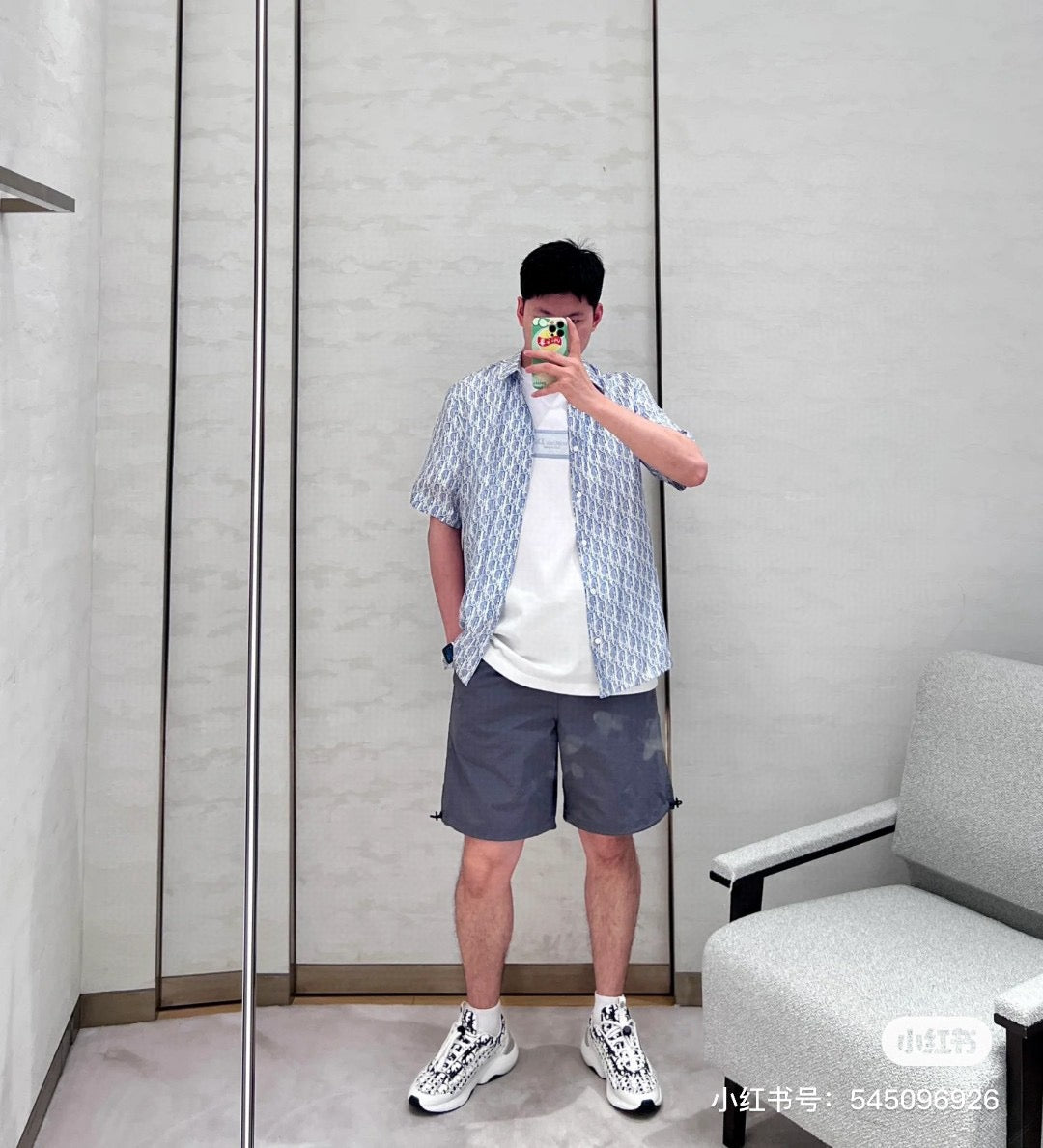 This Dior shirt features an all-over monogram print in shades of blue and white, giving it a distinct and stylish appearance. The classic collar and short sleeves make it perfect for warm weather, while the high-quality fabric ensures comfort and durability. The intricate Dior pattern adds a touch of luxury, making this shirt an ideal choice for both casual and semi-formal occasions.