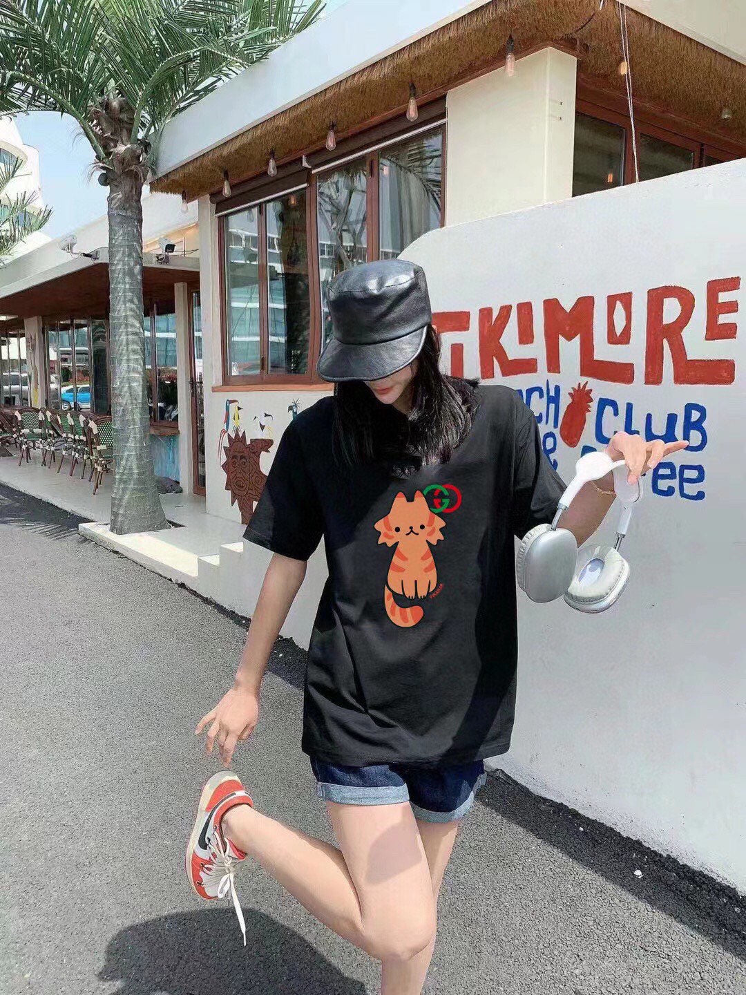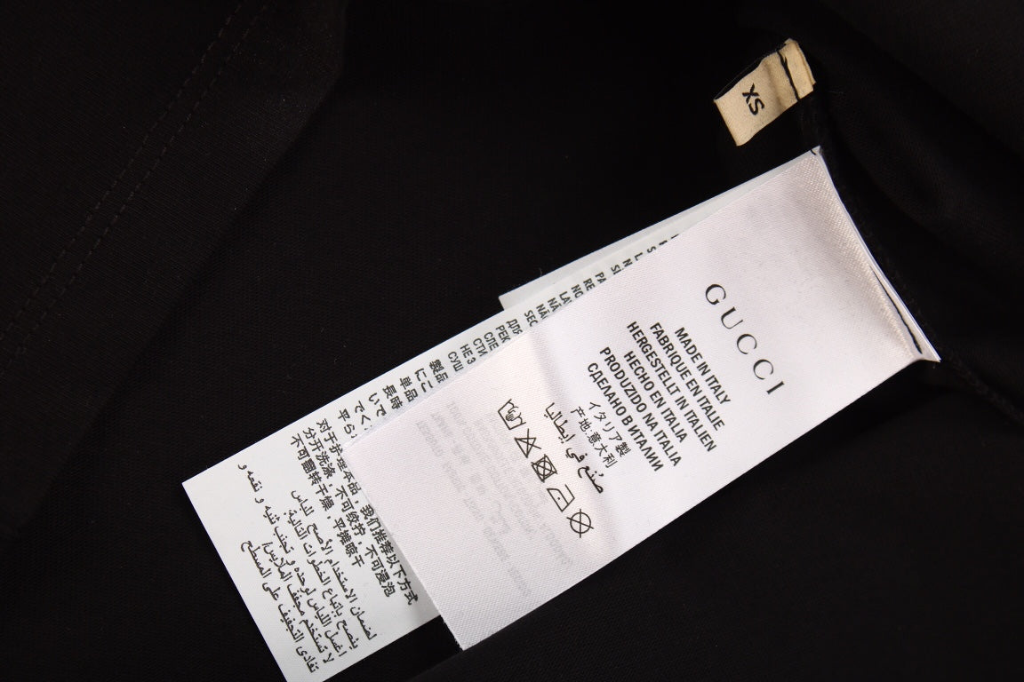 This Gucci t-shirt features an adorable cat graphic design. The black shirt showcases a cute pink cat along with the iconic Gucci logo. Made from high-quality materials, it offers both comfort and style. Perfect for adding a playful touch to your casual wardrobe.