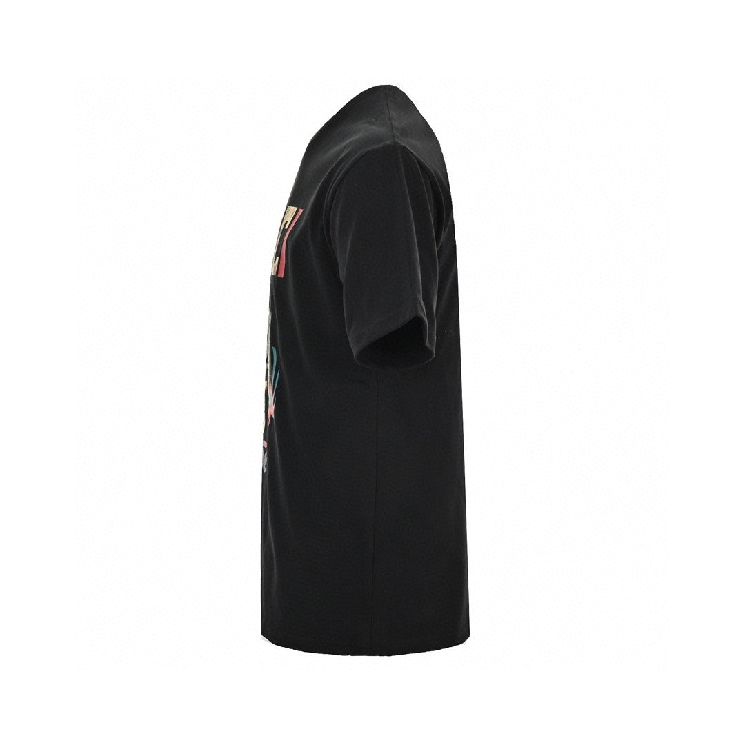 This black Gucci T-shirt features a striking dragon graphic, making it a standout piece in any wardrobe. The brand name "GUCCI" is displayed in a colorful, patterned font above the detailed dragon design, adding a playful yet luxurious touch. Crafted from high-quality materials, this T-shirt promises both comfort and durability. Its relaxed fit and classic crew neck design ensure it's perfect for casual wear, blending artistic flair with everyday style.
