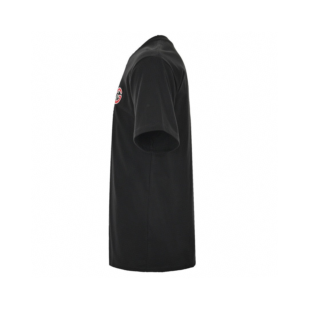 This Gucci t-shirt features a minimalist design with the interlocking GG logo in green and red on the chest. Made from high-quality black cotton, it offers both comfort and a touch of luxury. Perfect for a refined and stylish look, this t-shirt is a versatile addition to any wardrobe.