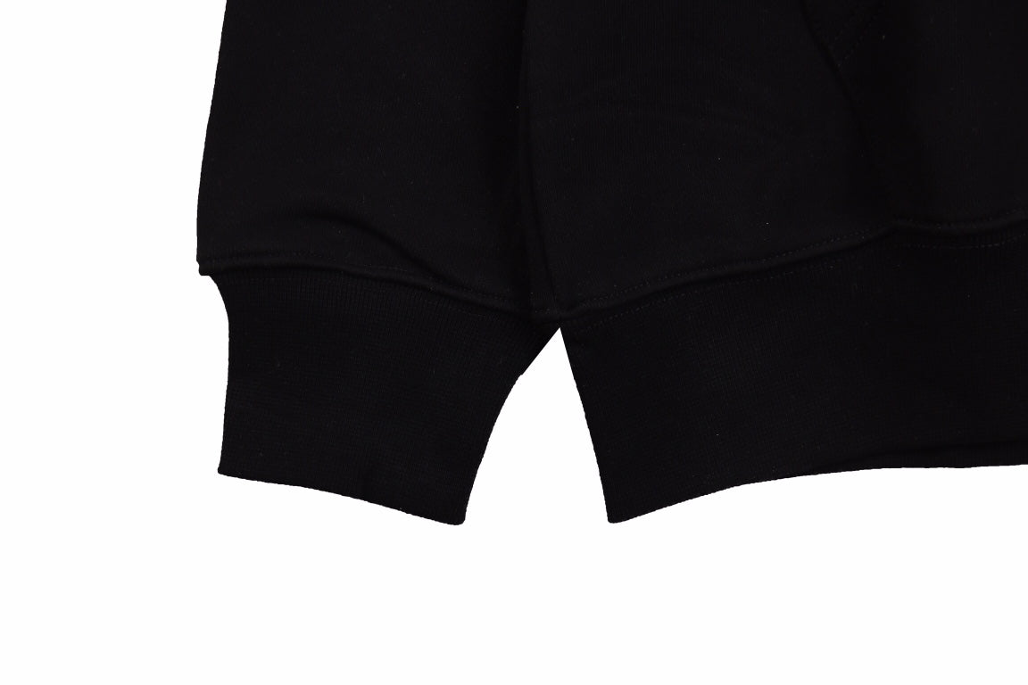This black Gucci hoodie features a vibrant rainbow-colored "GUCCI" logo on the front. It includes a drawstring hood and a spacious front pocket. The soft and comfortable fabric makes it perfect for casual wear. A stylish addition to any wardrobe.