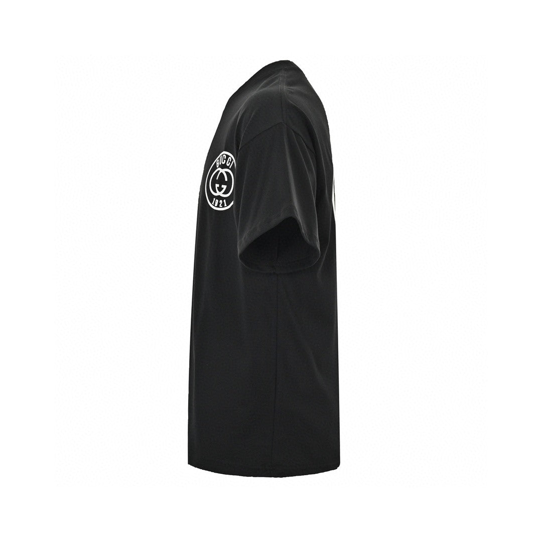 This Gucci t-shirt features a classic design with the iconic interlocking GG logo and "1921" text on the left chest. The black fabric offers a sleek and sophisticated look, perfect for adding a touch of elegance to any casual outfit. Ideal for those who appreciate classic branding and high-quality fashion.